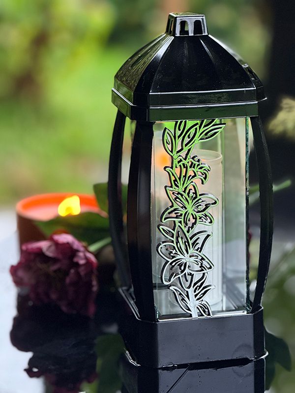 Kapliczka z serii Glamour będzie elegancką ozdobą każdego pomnika, nadaje się do stosowania wkładów klasycznych jak i ledowych.