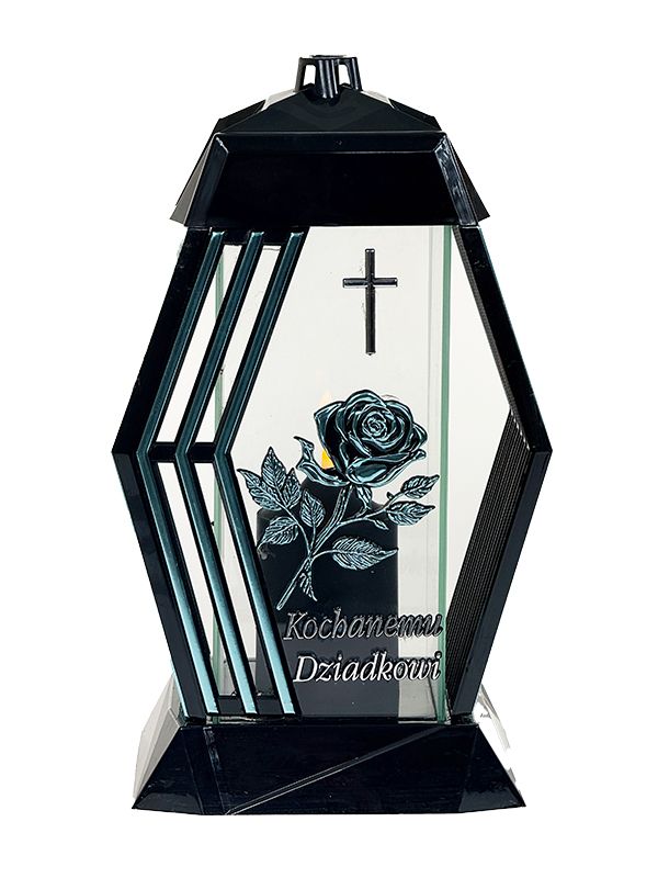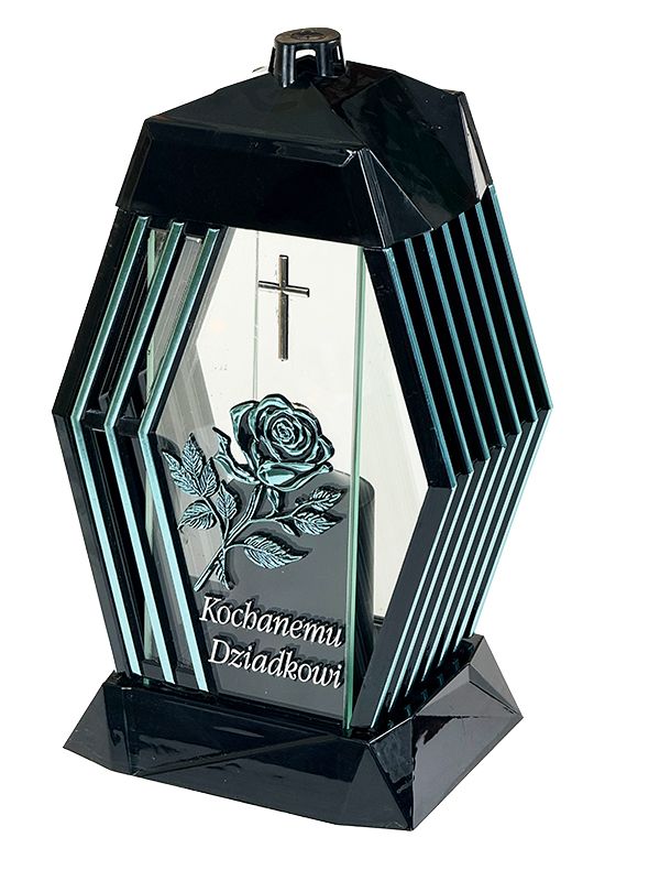 Znicz Kapliczka Lamel Niebieski "Kochanemu Dziadkowi" ze świecą Led (37,5 cm)