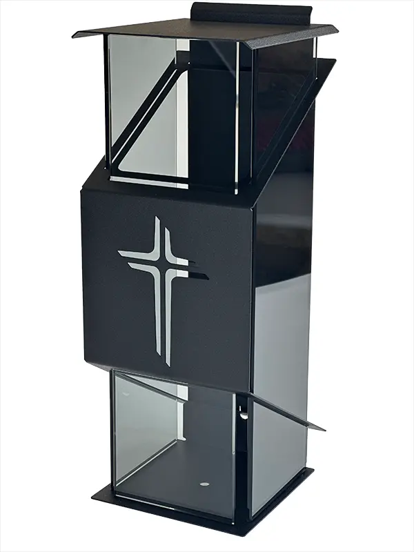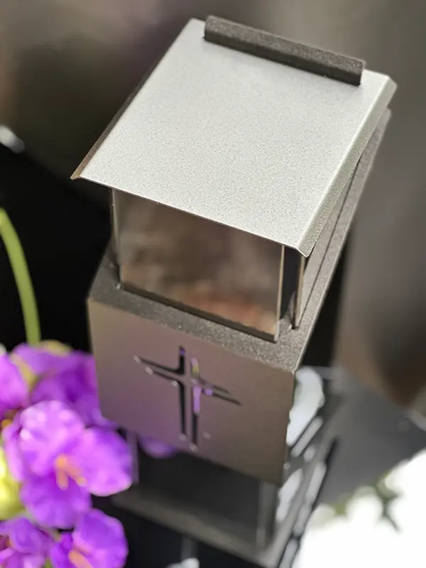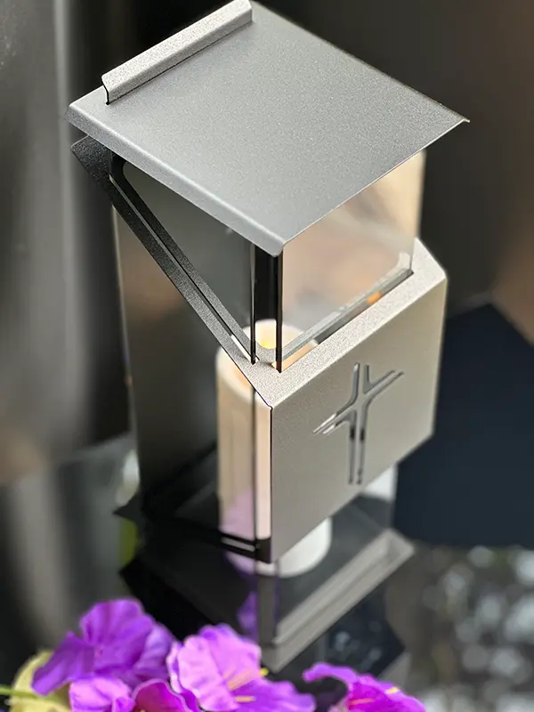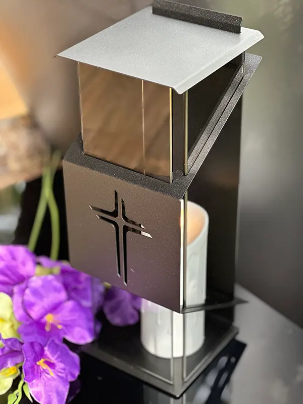 Znicz/Kapliczka Premium to połączenie nowoczesnego wzornictwa z tradycyjnymi wartościami. Dzięki zastosowaniu najwyższej jakości materiałów oraz zaawansowanej technologii malowania proszkowego, produkt nie tylko prezentuje się estetycznie, ale także jest wyjątkowo trwały. Subtelny motyw delikatnego krzyża oraz grafitowe szklane ścianki tworzą harmonijną całość, która w godny sposób upamiętni pamięć o bliskich.