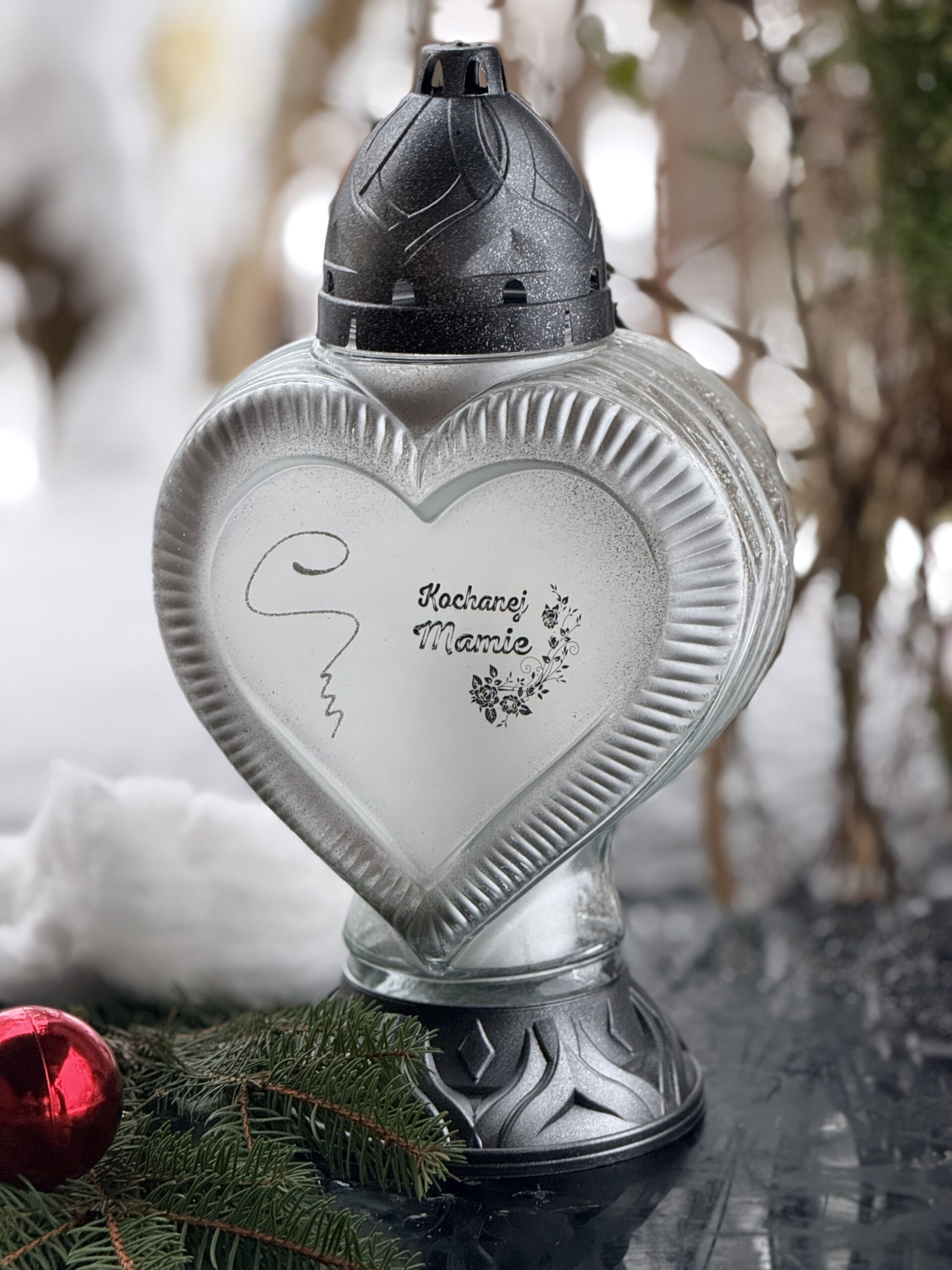 Znicz klasyczny Duże Serce ZSE9 Kochanej mamie SREBRNE (36cm)