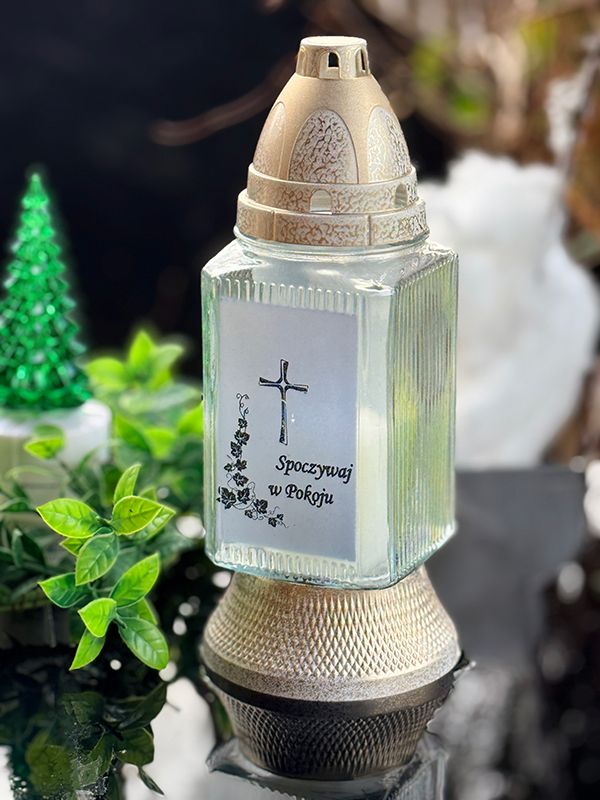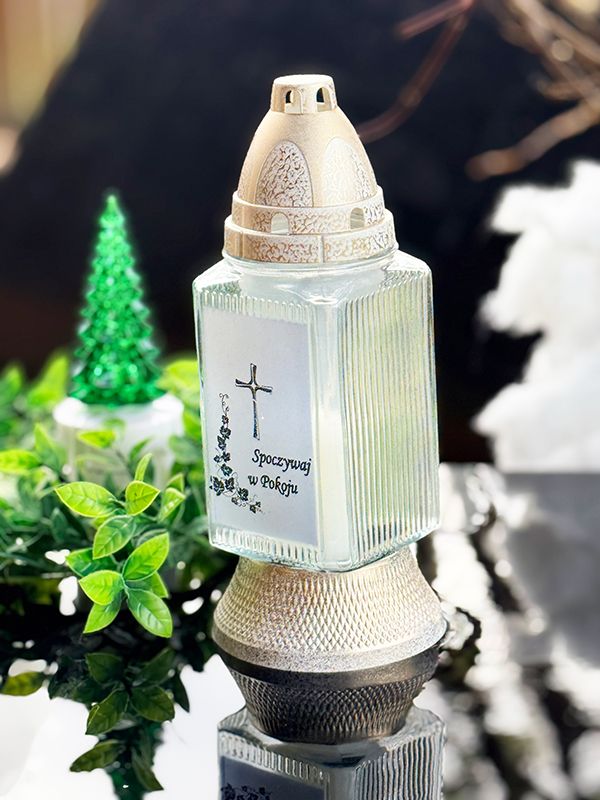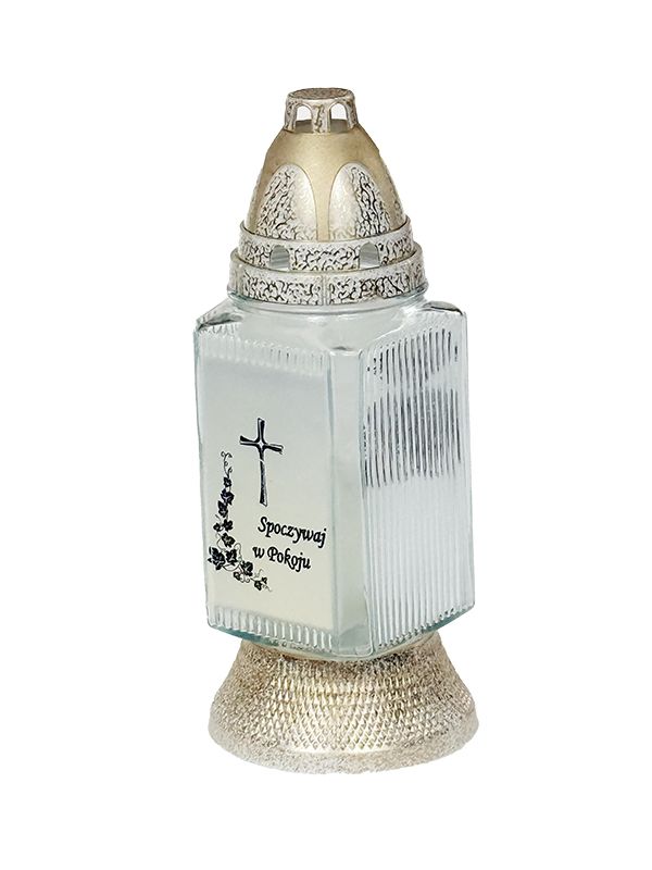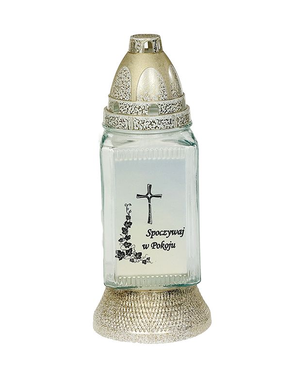 Znicz klasyczny szklany Kostka Spoczywaj w pokoju S228 (25,5cm)