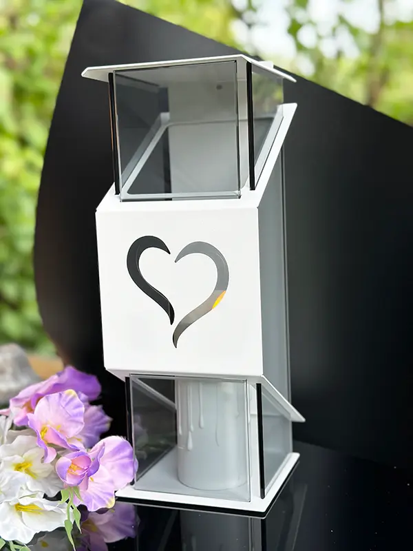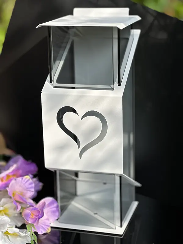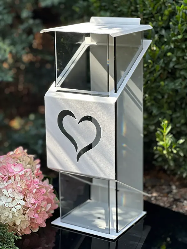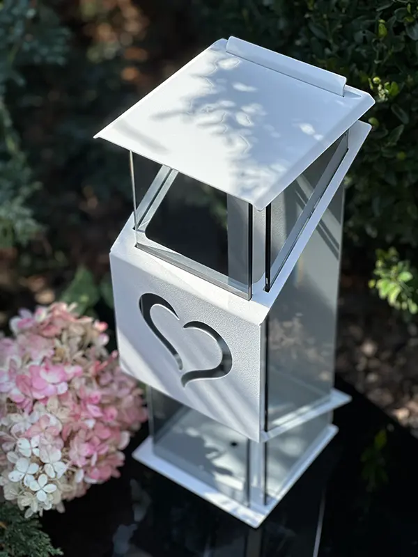 Znicz/Kapliczka ZBS3G Premium to połączenie nowoczesnego wzornictwa z tradycyjnymi wartościami. Dzięki zastosowaniu najwyższej jakości materiałów oraz zaawansowanej technologii malowania proszkowego, produkt nie tylko prezentuje się estetycznie, ale także jest wyjątkowo trwały. Subtelny motyw SERCA oraz transparentne szklane ścianki tworzą harmonijną całość, która w godny sposób upamiętni pamięć o bliskich.