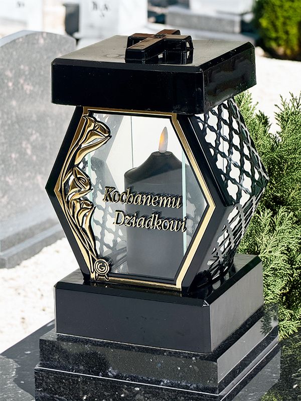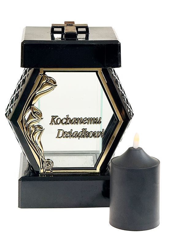 Znicz na pomnik Diament Kalia "Kochanemu Dziadkowi" ze świecą Led