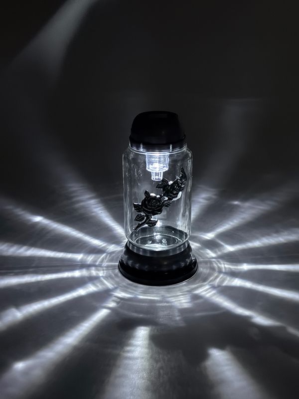 Emitowany blask jest  w kolorze białym, ostatnie sztuki z kolekcji. Kolor podstawki oraz kapturka w odcieniach koloru srebrnego.