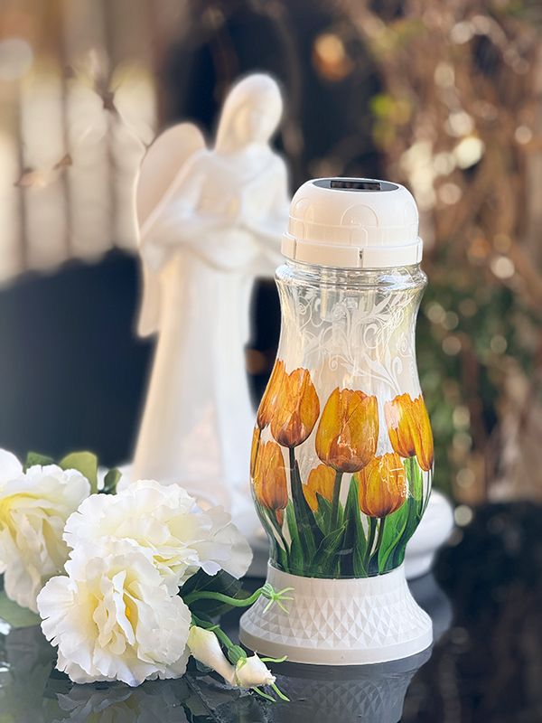 Dzięki panelowi solarnemu znicz rozbłyska automatycznie po zmroku, emitując delikatne, nastrojowe światło bez konieczności pamiętania o wymianie wkładów. Kolorowa wstążeczka nadaje zniczowi uroku i jest piękną dekoracją nagrobka. To czyste i bezpieczne rozwiązanie – zapomnij o rozlanym wosku czy dymiących knotach.