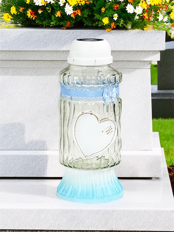 Znicz solarny ZP767 Białe Serce (Niebieski)