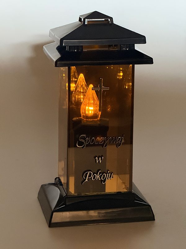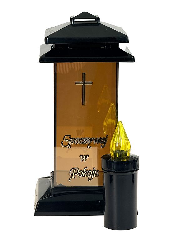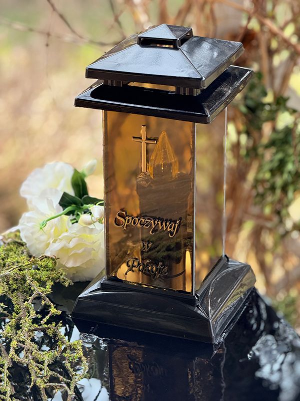 Klasyczny szklany znicz w wyjątkowym, miodowym odcieniu z nostalgiczną sentencją “spoczywaj w pokoju”. Do zestawu została dobrana świeca Led o odpowiedniej wysokości.
