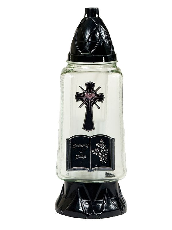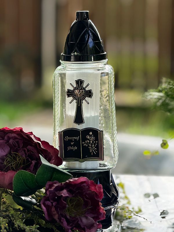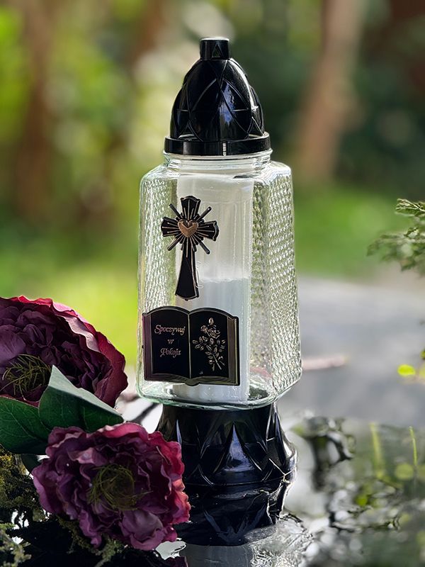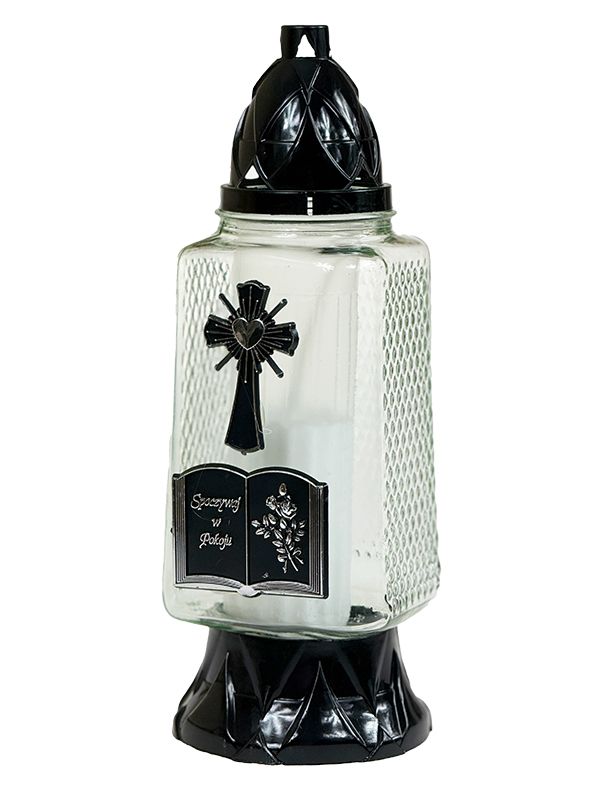 Znicz szklany klasyczny Z1240 Ksiązka Spoczywaj w Pokoju (ZŁ)