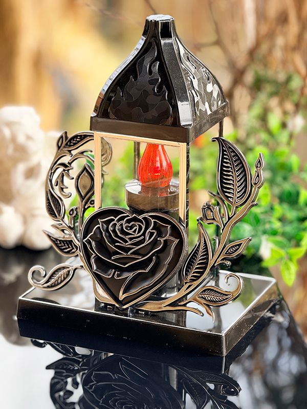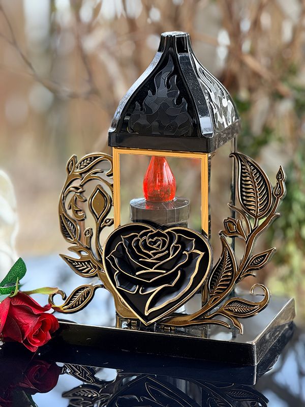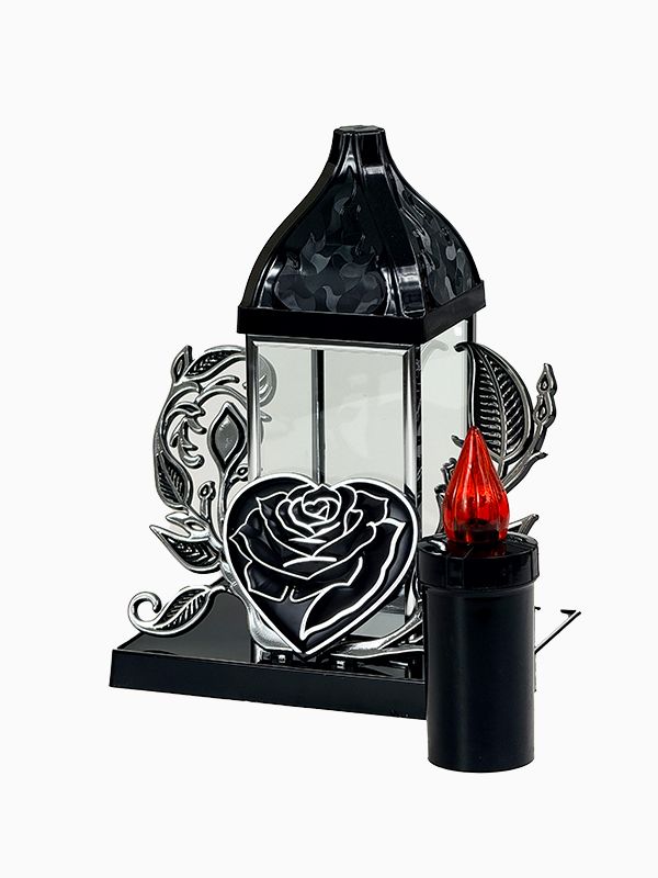 Znicz szklany z pięknymi kwiatowymi dekoracjami z nowej kolekcji. Do zestawu dołączona jest świeca Led z bateriami w losowo wybranym kolorze.