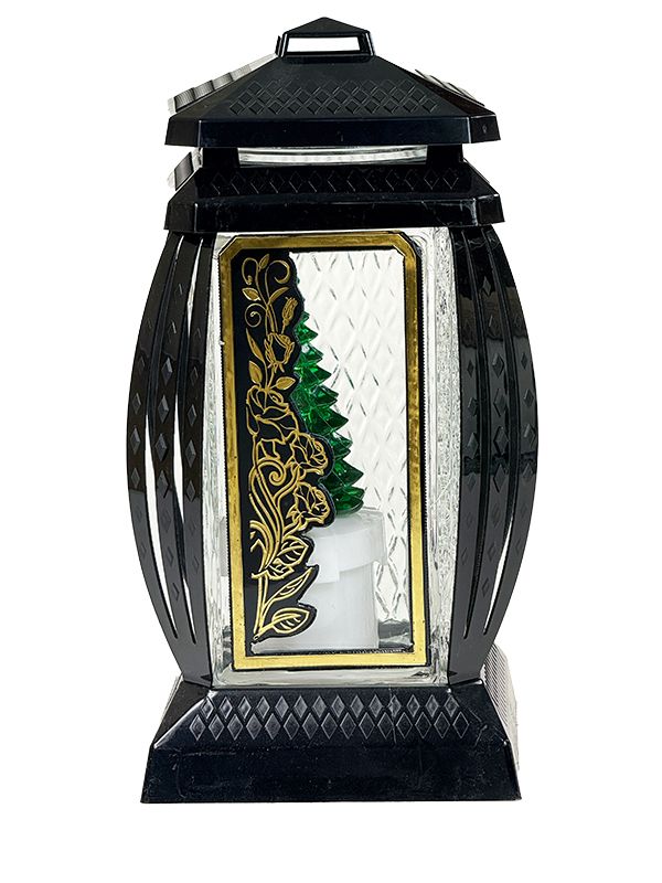 Znicz szklany Prima Vera złoty dekor + Choinka Led MD1CH
