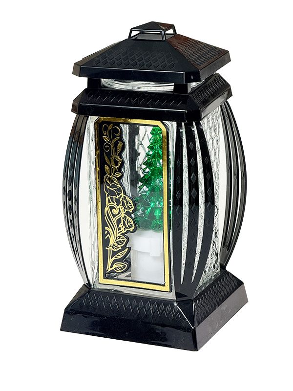 Znicz szklany ze świątecznym akcentem w postaci wkładu choinki Led