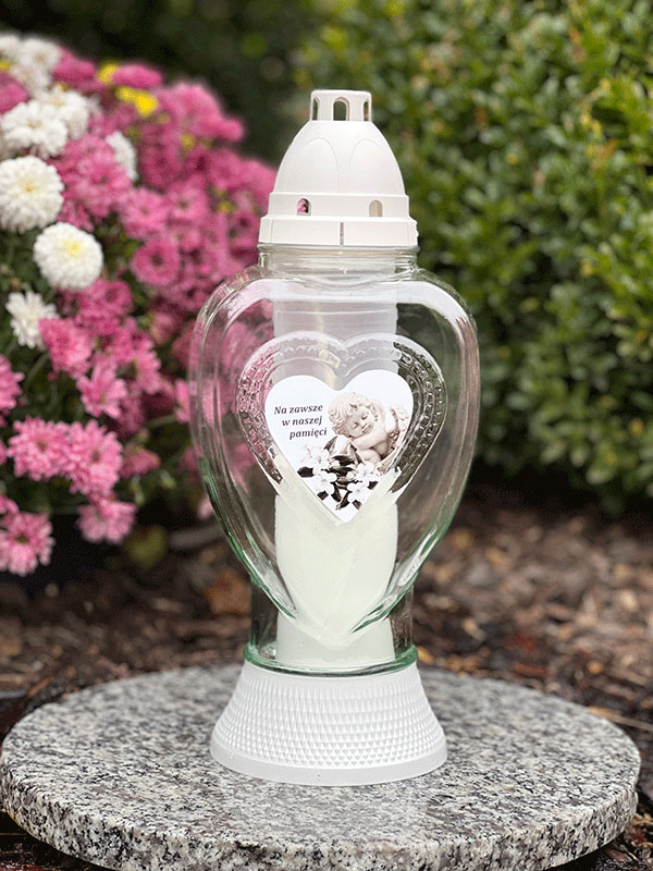 Piękny znicz z sentymentalnym napisem w sercu.